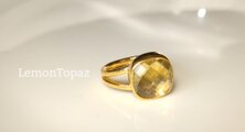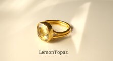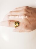 スクエア型の大きなレモントパーズ。透明感がありパッと華やか。ゴールドカラーともマッチしていて、つけているだけで元気がでるような、そんなリングです。