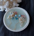 ラリマーを中心に、淡い水色やピンクの天然石を合わせたとっても可愛いニュアンスカラーでまとめたピアス。