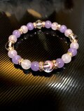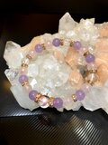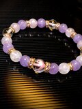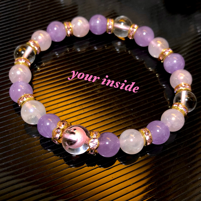 ピンク彫り イルカ水晶 ラベンダーアメジスト 天然石ブレスレット