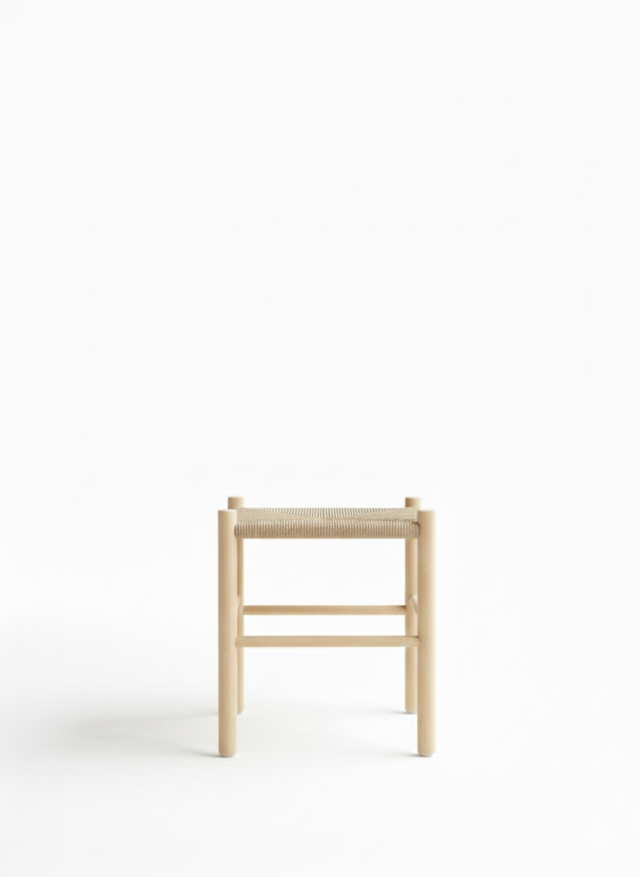 座面の形は長方形で、ペーパーコードで仕上げた、贅沢なキッズチェアです。編み方は封筒編みで仕上げました。