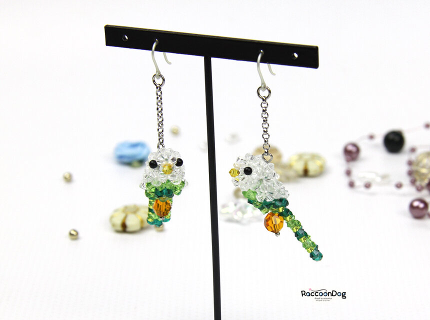 ビーズアクセサリー,ビーズ,ビーズピアス,インコ,鳥,プレシオサ,スワロ,天然石