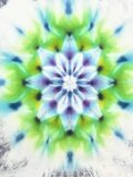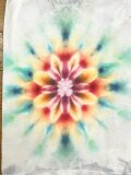 今回は優しく淡いグレーを主体にムラ染めし、花のように彩る微細な色彩を曼荼羅の花に咲かせました。