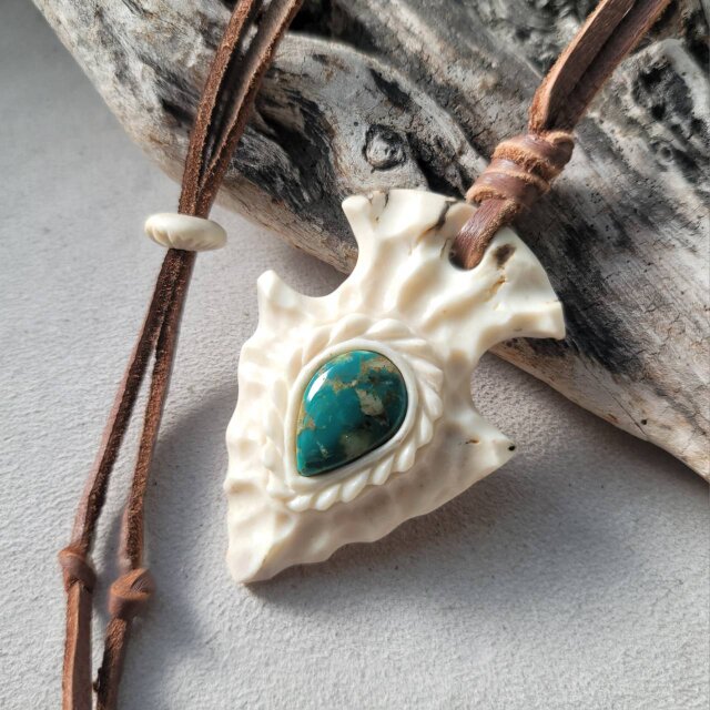 こちらは【鹿の角 チベタンターコイズの矢じりペンダント】になります。