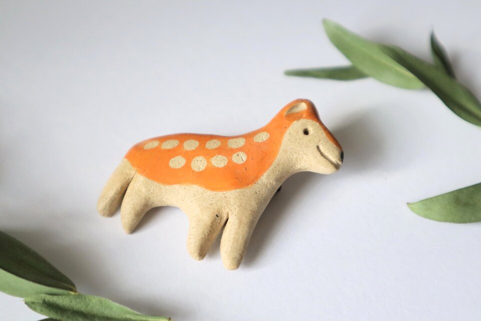 森のどうぶつ 、鹿ブローチ。