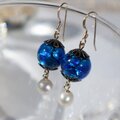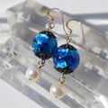 ホタル玉 直径約12mm、重さ片方約3g、フック高さ約16mm、フレッシュウォーターパール約7~8mm/ ブルー