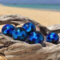 ホタル玉といえば、沖縄の海を思い浮かばせる深いブルーの物が有名で、琉球ガラスと共に根強い人気があります。海の思い出に完璧な青いジュエリー。