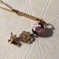 根付 雀と梅 ホタルガラス ほたる玉 高級 ストラップ チェコビーズ 男女兼用 帯飾り 提物 光る 送料無料 ピンク