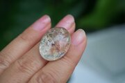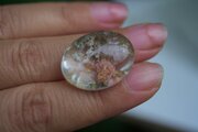 キラキラとした桜ピンク色の内包物が可愛らしい水晶。