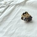 まるで左側のスパンコールが羽ばたいてゴールドの光を放つような、強い幸運をイメージしたブローチです。