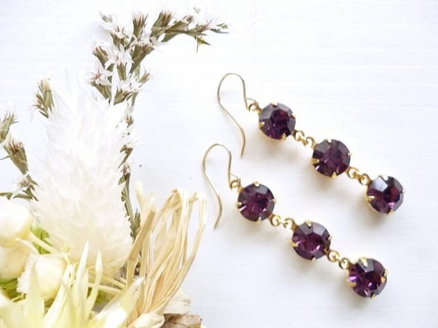 ヴィンテージスワロフスキーを使った3連ピアス、Vesperシリーズ。