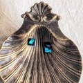小さなブルー螺鈿のキューブピアスイヤリング1549