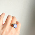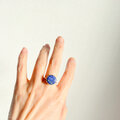 フラットな周りに三角のカットが入ったラピスラズリのリングになります。天の川のような金色の星が(パイライト)が入っていて神秘的でとても綺麗です。そのラピスラズリをカットを施した石座で包んでいるようなリングに仕上げてあります。