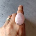 たっぷりとボリュームのある淡いピンクのモルガナイトをシルバーリングに仕立てました。