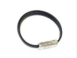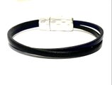 ヨーロッパ製 高級本革 3mm幅 の 黒 とネイビー を クロスさせ、シンプルでおしゃれなブレスレットを作りました。