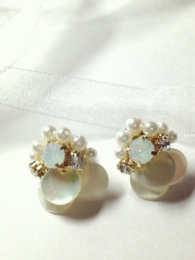 シェルで花びらを型取りその周りにパールとビジューをちりばめました♡