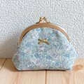 薔薇柄&りぼん がま口ポーチ 10cm口金 バラ ブルー 618