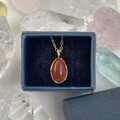 透明な朱色に光に透かすと紺色の部分がちらりと見える個性的なオレゴンサンストーンです。