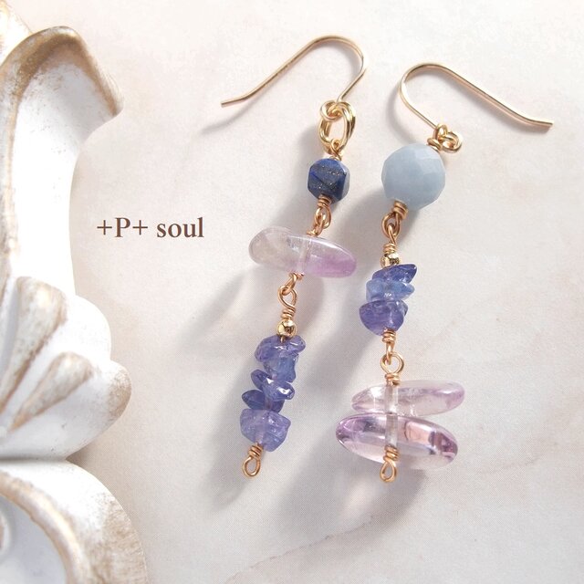 011224 タンザナイト ピンクアメジスト アメシスト ラピスラズリ エンジェライト ブルー パープル 青 紫 12月 2月 天然石 1大人可愛い 甘辛 上品 ギフト プレゼント 普段使い パワーストーン 誕生石 誕生日プレゼント クリスマス プレゼント ご褒美 アメジスト アシンメトリー