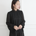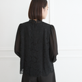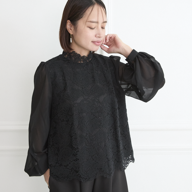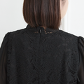 選べる3サイズ 花柄レース+シフォン袖 ブラウス 長袖 ブラック 0552BK