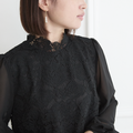 繊細なデザインの花柄レースのトップスはスタンドカラーがクラッシックな印象に。