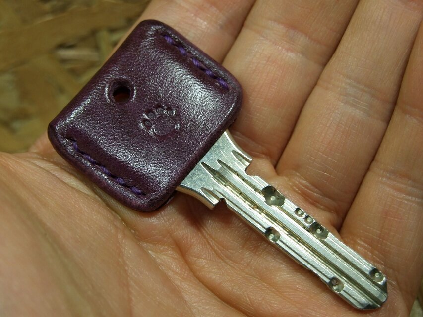 ルガトショルダーの紫で作ったキーカバーです。