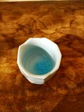 良質な磁器土を使用して作られたぐい呑みです。真っ白な磁器土と水色の釉薬のコントラストがとても綺麗です。