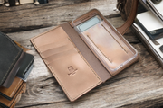 国内でなめしされる最高峰のヌメ革、それが栃木レザーです。タンニンなめし革は渋なめしともいわれ、ミモザなどの植物の液で数ヶ月かけてじっくり製造されます。その中でも表面を磨いたサドルレザーを使っています。天然の感触をぜひお確かめください。