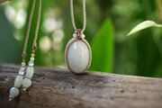 ほんのり紫★ミャンマー翡翠・白翡翠・マクラメネックレス1417