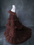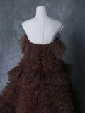 華やか パーティードレス コーヒーの色 柔らかく重ねたチュールスカート ベアトップ 披露宴/前撮り