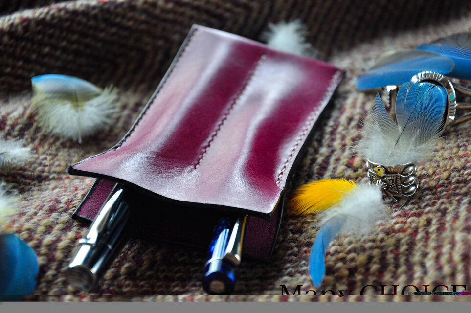 イタリアンオイルバケッタレザー・2本差しペンケース(葡萄酒)