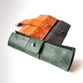 革をくるっと巻いてギボシで留める感じのロールペンケースを作ったら、コンパクトでかわいらしい感じに仕上がりました!
