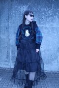 下の部分はオーガンジー素材をたっぷりと使い、ボリュームのあるデザインで、仕上げはメローを施し、他にはない可愛くカッコいいアイテムに仕上がりました。