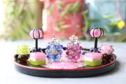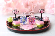 雪洞や菱餅、桜橘なども全てガラスでひとつひとつ丁寧に制作いたしました。
