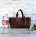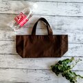 横長のキャンバスミニトートバッグです。張りのある柔らかい11号帆布を使用しました。前面と背面を1枚の布で繋ぐデザインです。