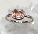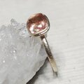 暖かい日差しのようなコッパーピンクのオレゴンサンストーン*無数に漂うコッパーインクルージョンがとても良く煌めきます*テーブル面のカットにやや揺らぎがみられますが秀逸な色合いと煌めきをお楽しみ下さい*淡い色合いのK10リングは古鉄錆のようなマット仕上げ、10-18号(推奨サイズ)の範囲を目安に調整可能、サイズ確定後にマットな覆輪で石留め致します*