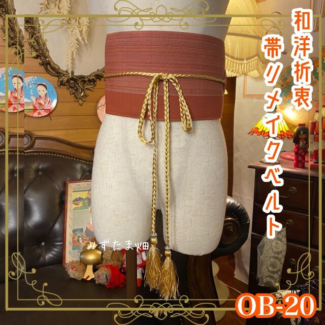 【 和洋折衷 レトロ 古着 帯 着物 和装 リメイク サッシュベルト ウエストマーク ハンドメイド OB-20 】