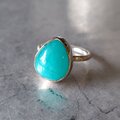 鮮やかなグリーンブルーが印象的なアマゾナイトをシルバーリングに仕立てました。