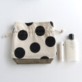 アースカラーの生地とドット柄の生地合わせを楽しむデザインの巾着ポーチです