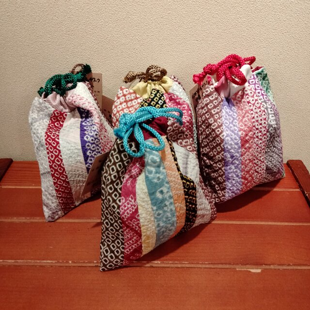 着物 絞りパッチワーク巾着