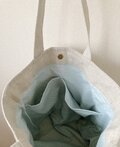 素材は丈夫なコットンリネンキャンバスとリネン生地を使用しております。さらにバッグ全体に接着芯を使用していますので、しっかりとした仕上がりです。
