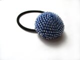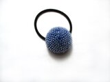 ビーズクロッシェヘアゴム(クリスタル×青)です。