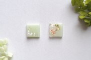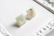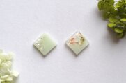 レジンアート アシンメトリーのスクエアピアス〈フェアリーグリーン〉
