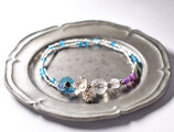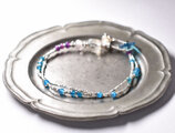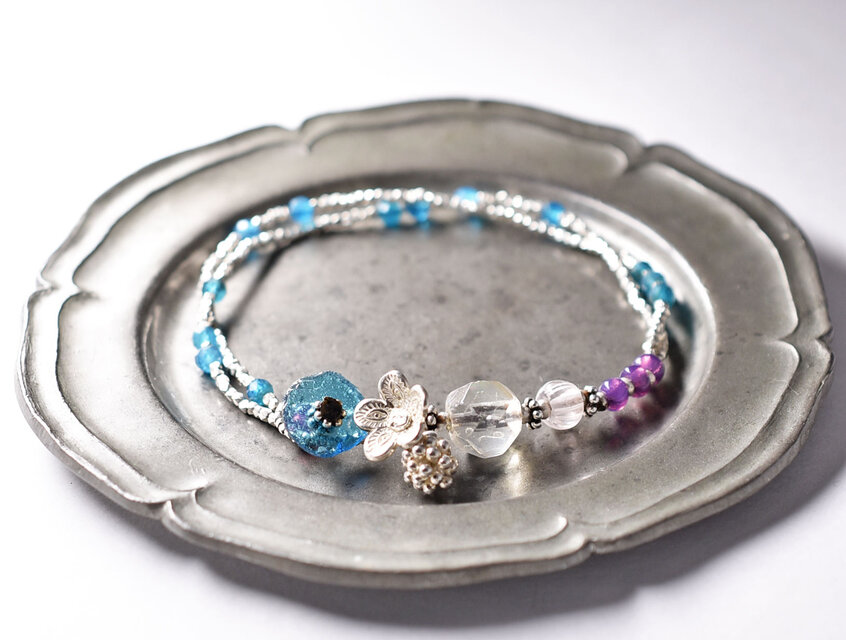 ヴィンテージオーロラビーズとグーズベリー、すみれ色ビーズ、アパタイト、煌めくカレンシルバービーズを繋いだ2連のブレスです。