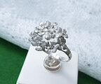 まるで本物のアジサイをかたどったような、立体感のあるリング。熟練の彫金家が原型を製作したリングです。