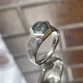 6角形のかっこいい石を、印台リングに伏せこみ留