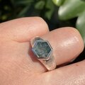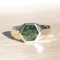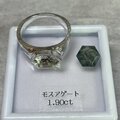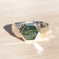 モスアゲート 6角 1.9ct 伏せこみ留 印台リング