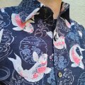 新作手作り長袖和柄シャツ(雪輪に錦鯉)