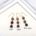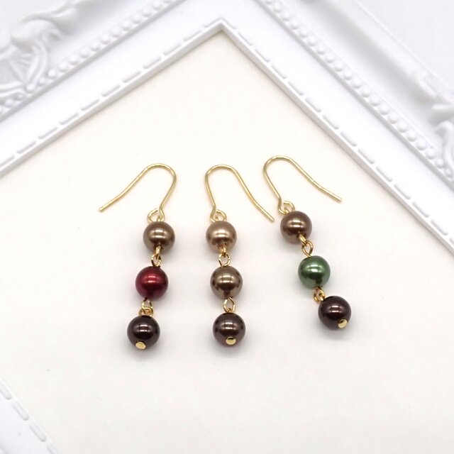 3色のショコラカラーのパールが耳元で揺れる3粒パールピアス/イヤリングです。