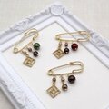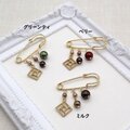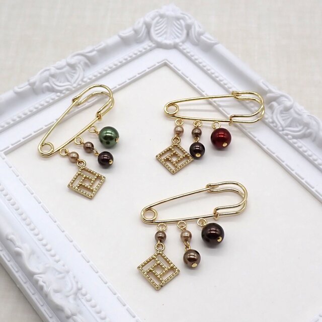 3色のショコラカラーのパールとスクエアチャームの大人可愛いブローチです。