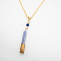 磁土から作った小さな磁器パーツと K14GFを組み合わせたネックレスです。